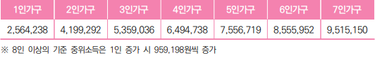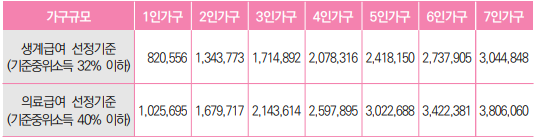 ※ 2026년 가구규모별·급여종류별 수급자 선정기준