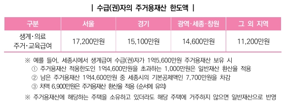 ② 세종시 주거용재산 한도액 1억 4,600만원에서 세종시 기본재산액 7,700만원 공제