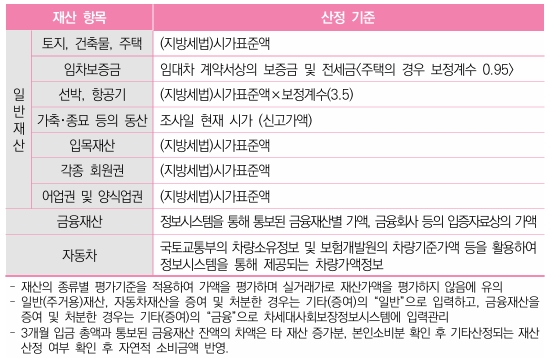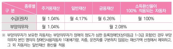 ※ 재산의 범위에서 제외하는 자동차(「자동차의 재산가액 산정기준과 재산가액에서 차감하는 기본재산액 및 부채」 별표 1 참조)