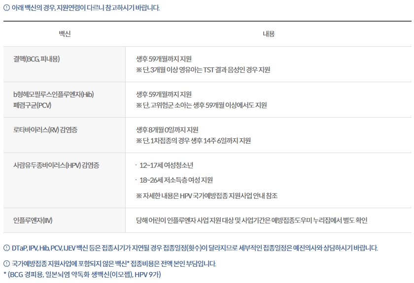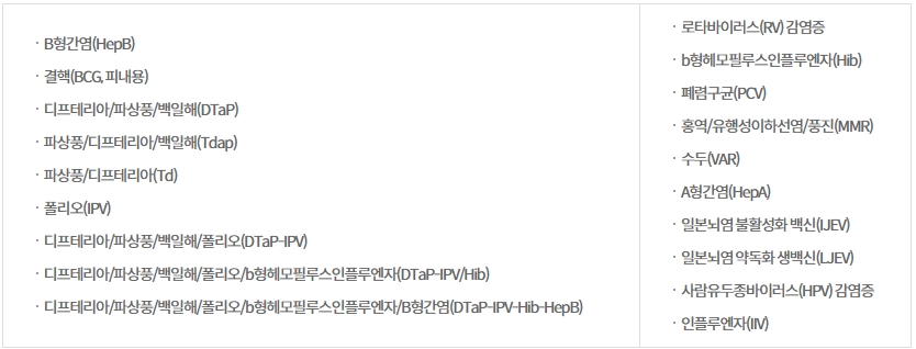 <출처: 질병관리청 예방접종도우미(www.nip.kdca.go.kr)홈페이지-예방접종 정보-국가예방접종 사업소개-어린이 국가예방접종 지원사업>