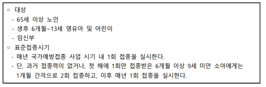 신생아부터 만 12세 미만의 아동에게 권장되는 국가필수예방접종에는 결핵, B형 간염, 디프테리아·파상풍·백일해, 폴리오, 홍역·유행성이하선염·풍진, 일본뇌염, 수두, 인플루엔자 등이 있습니다.