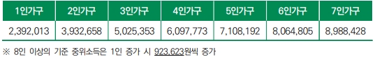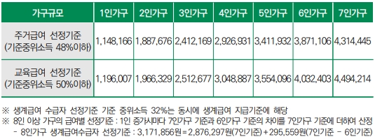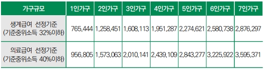 ※ 2025년 가구규모별·급여종류별 수급자 선정기준