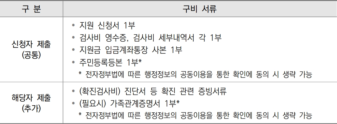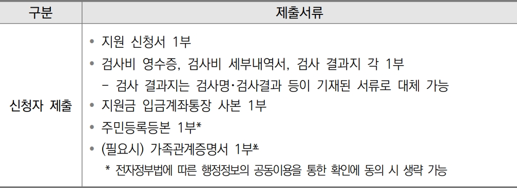 출생 후 28일 이내에 실시하여 건강보험이 적용된 선별검사를 대상으로 함. 단, 출생일 기준 28일 이후에 실시하였어도 건강보험이 적용된 선별검사는 지원 가능