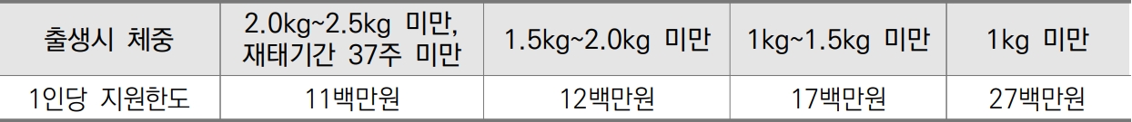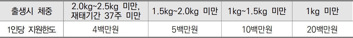 ※ 신생아중환자실 부족에 따른 대기 또는 이송의 사유로 출생 후 24시간 이내에 신생아중환자실에 입원하지 못한 경우, 의료기관의 확인을 받아 지원 가능
