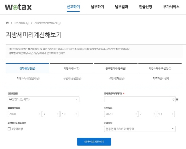 <출처: 위텍스 홈페이지(www.wetax.go.kr), 지방세정보-지방세미리계산해보기>