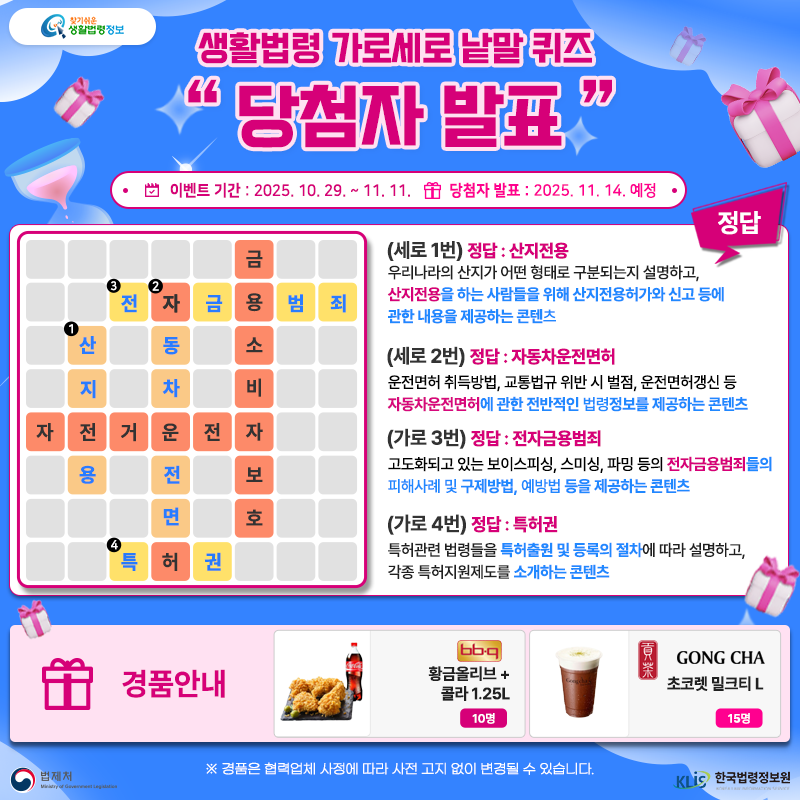 생활법령 가로세로 낱말 퀴즈 이벤트에 참여해 주신 모든 분께 감사드립니다.