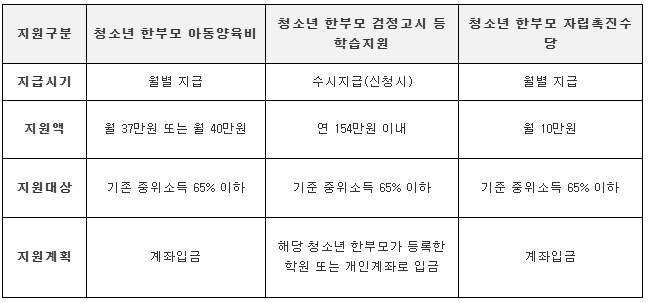 ◇ 청소년 한부모 복지급여